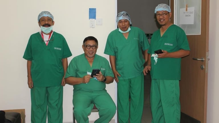 Bersama Prof. Dr. dr. Idrus A. Paturusi, Dr. Nuralim & Dr. Hasbullah di lokasi gempa bumi Lombok, saat menyusun buku "Dokter di Medan Lara"